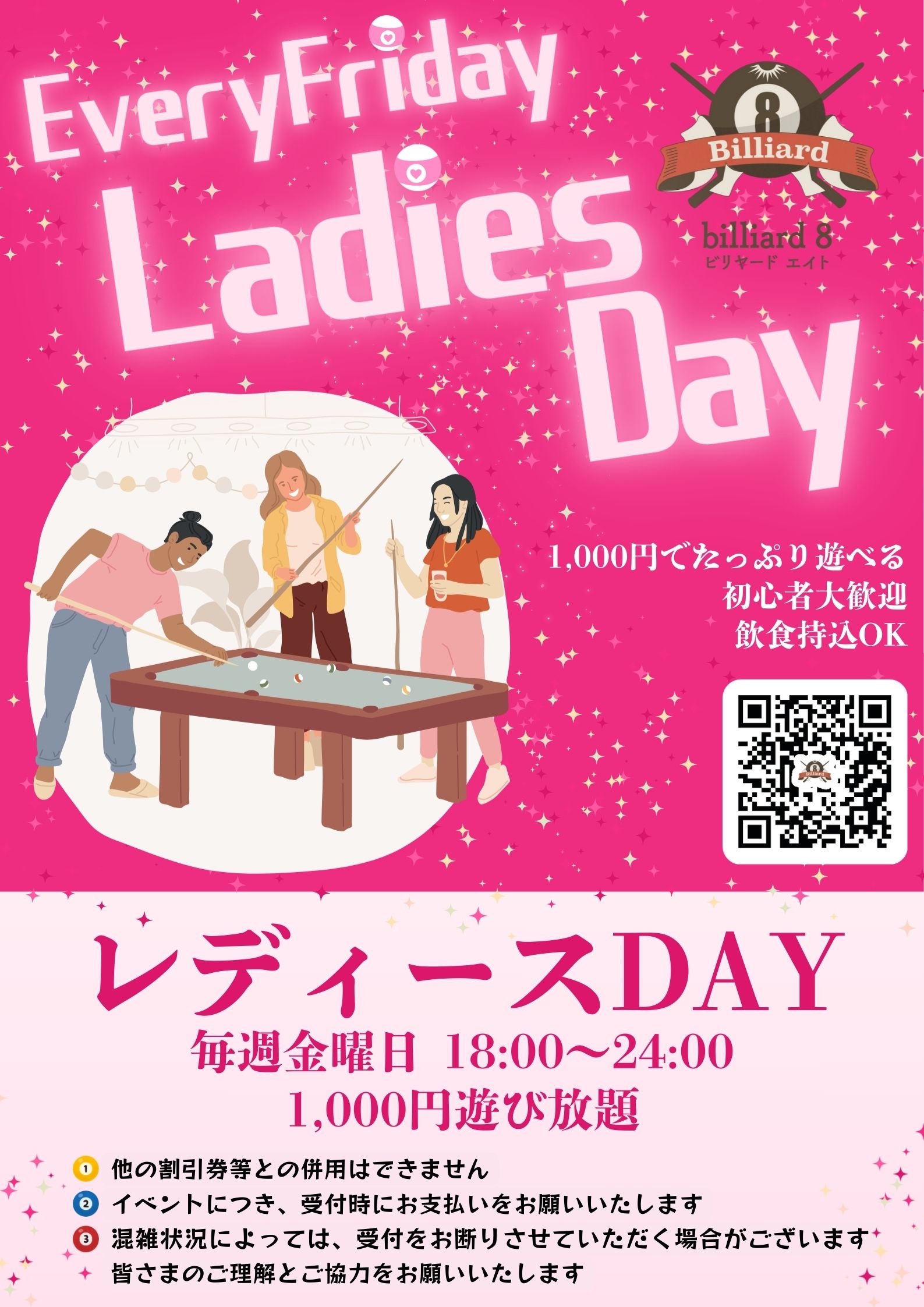 Billiard8の「レディースデイ」を開催します!